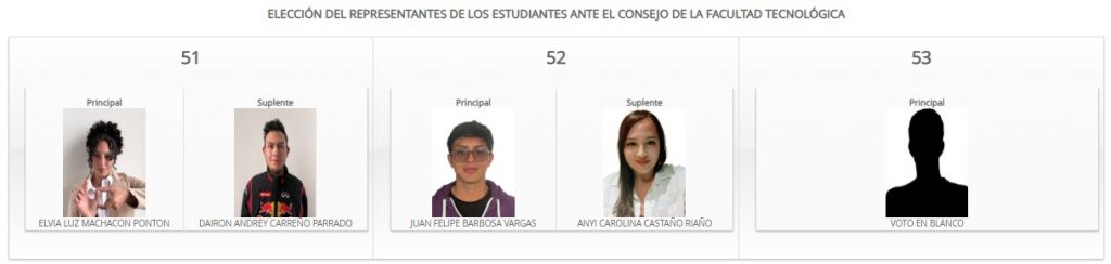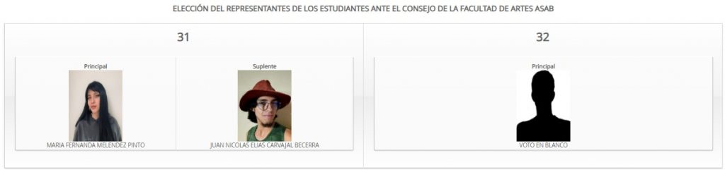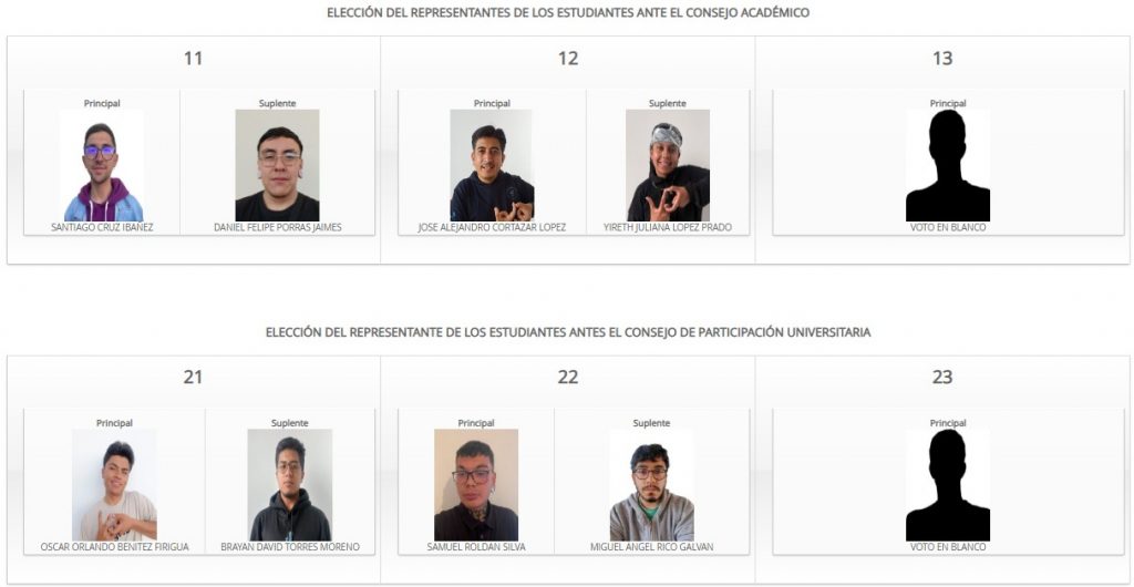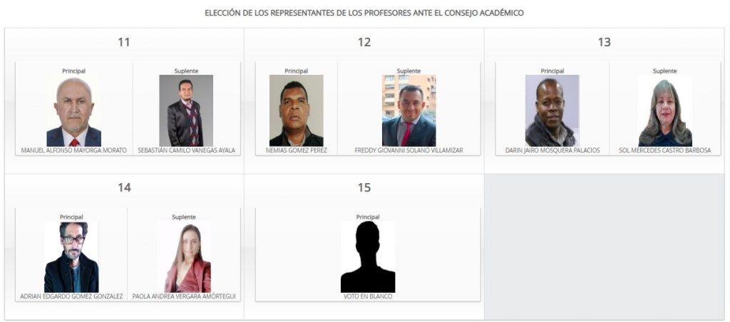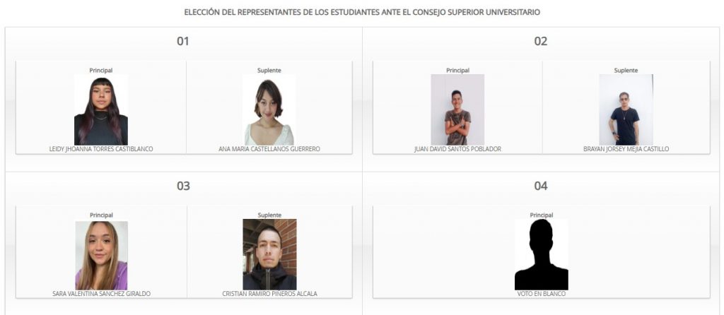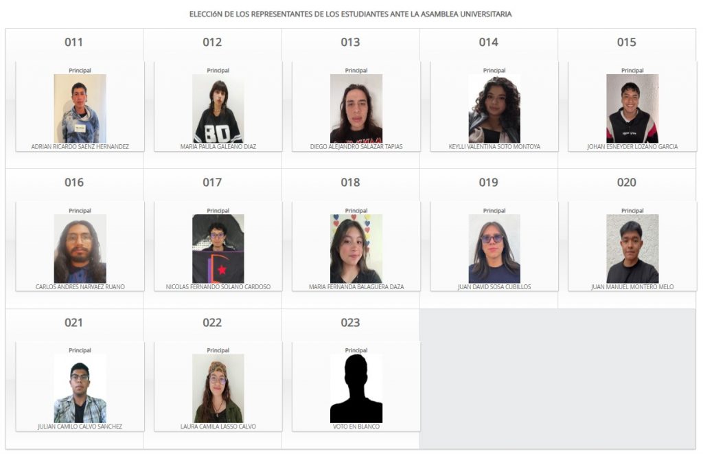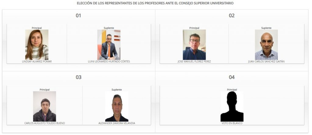 En cumplimiento de los calendarios establecidos mediante las Resoluciones de Rectoría núm. 498, 499, 500, 501, 502, 504 y 505 del 1 de septiembre de 2025, modificadas por las resoluciones núm. 586, 587, 588, 589, 590, 591 y 592 del 14 de octubre de 2025, para el desarrollo de los procesos electorales a llevarse a cabo el próximo 27 de noviembre de 2025, la secretaria general da a conocer el Tarjetón Electoral quedando de la siguiente manera: