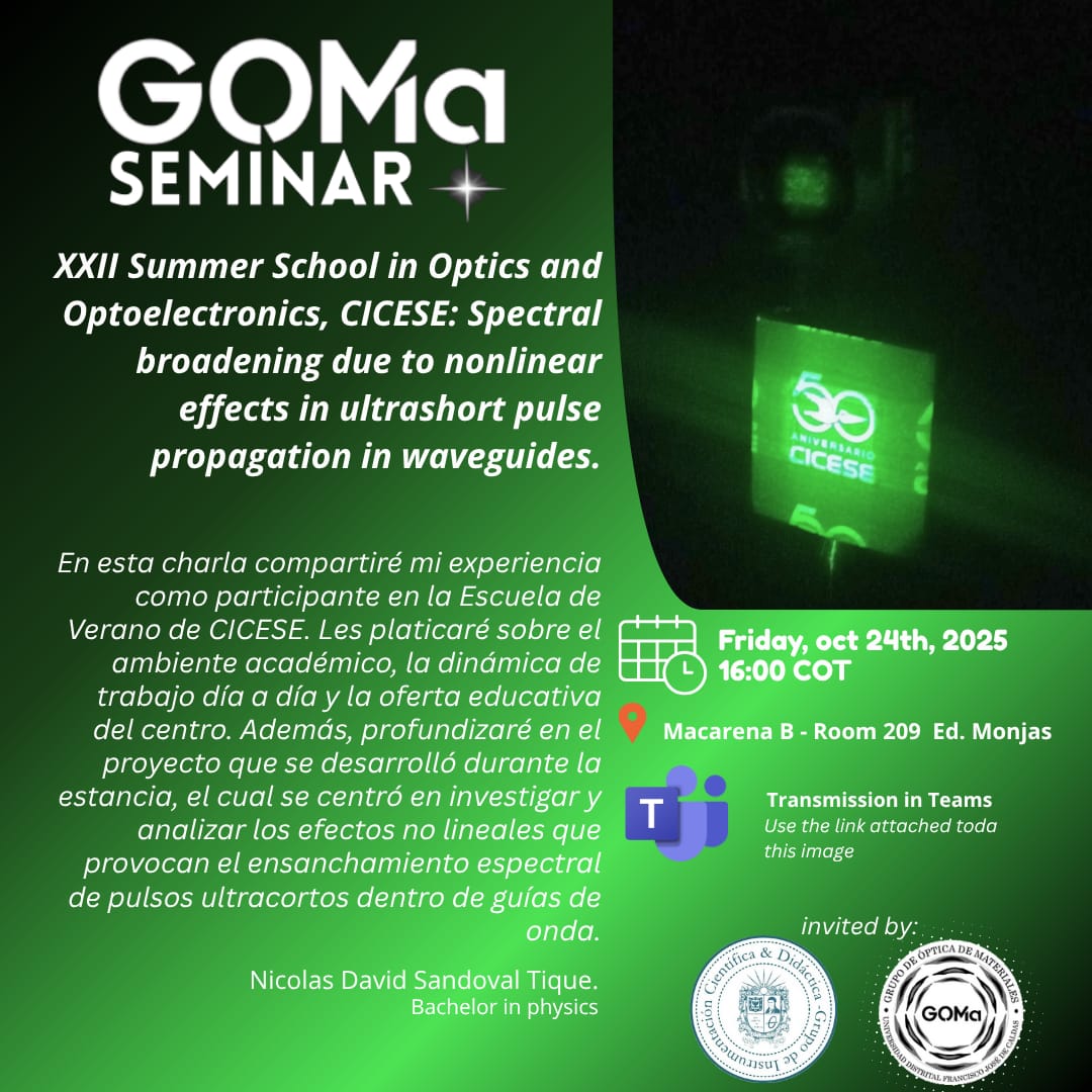 "XXII Summer School in Optics and Optoelectronics, CICESE: Spectral broadening due to nonlinear effects in ultrashort pulse propagation in waveguides" - Nicolas David Sandoval Tique