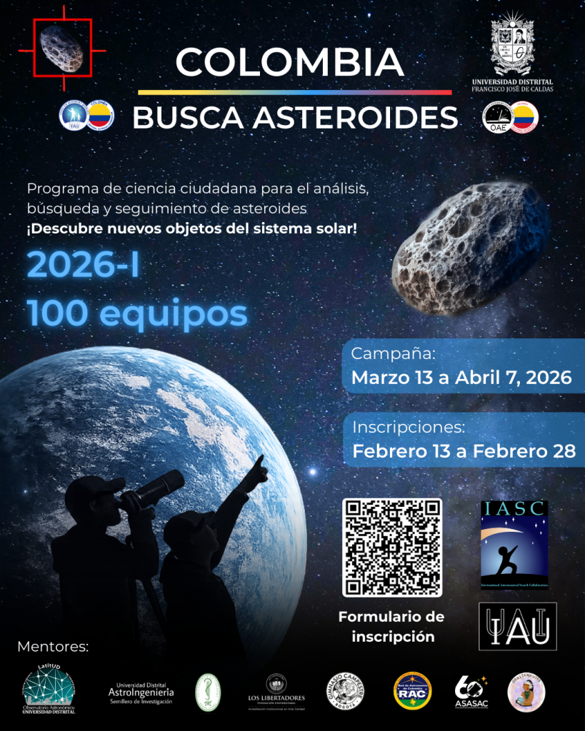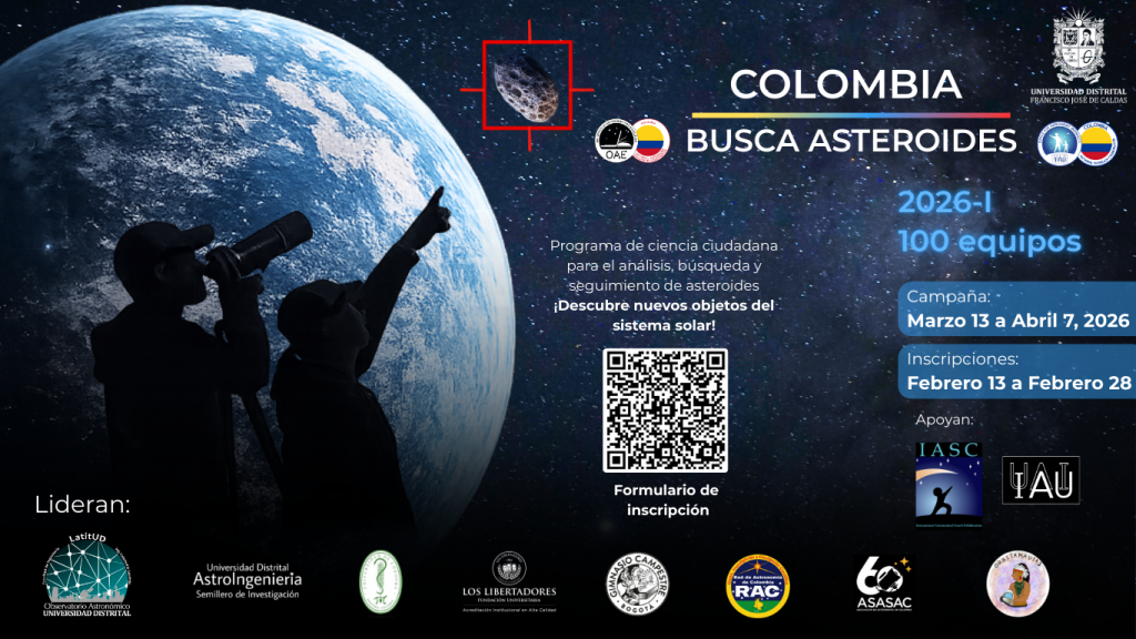 Tenemos para esta Campaña de Colombia Busca Asteroides una oferta de 100 cupos para equipos en el territorio nacional; esta iniciativa es apoyada por la Oficina de Astronomía para la Educación en Colombia OAE-Colombia,